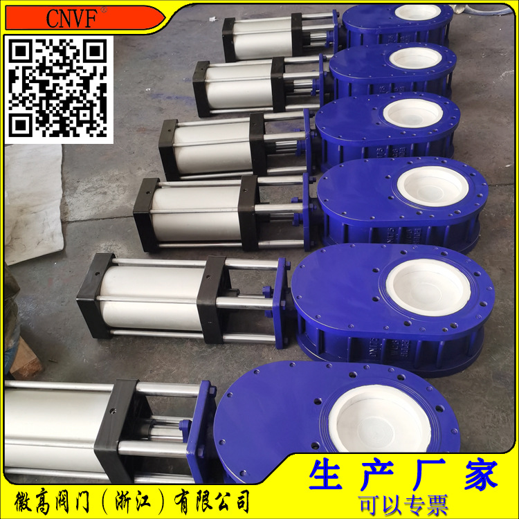氣動(dòng)對(duì)夾雙閘板出料閥左右閥體、中閥體、雙閥板、氣缸、復(fù)位彈簧、定位套、填料等部件組成,該閥門依托壓縮空氣作為動(dòng)力源給氣缸充氣使氣缸在壓縮空氣的作用下帶動(dòng)閥板快速上下滑動(dòng)(即開關(guān)互相切換),達(dá)到快速開啟或關(guān)閉的功能。